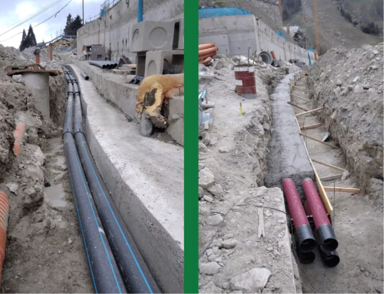 Proyecto de Obra Civil y Urbanización en Baqueira. Trabajos a realizar: movimiento de tierras, canalizaciones, urbanización y pavimentación.