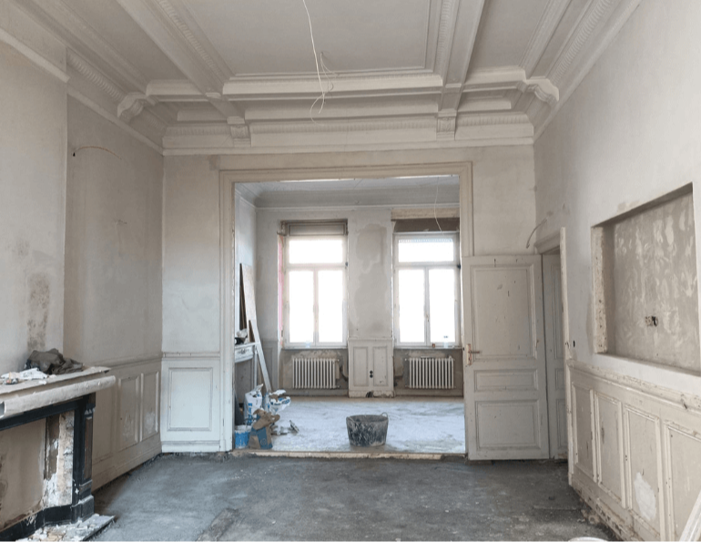 Proyecto de rehabilitación integral de edificio patrimonial en Luxemburgo. Trabajos a realizar: refuerzo de estructura, albañilería, acabados e instalaciones.